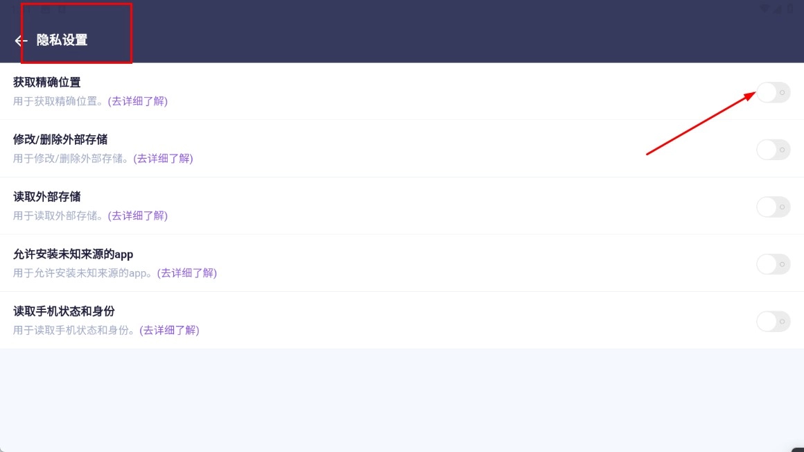 1、在【隐私设置-界面】中,你可以依据自身需求开启“获取精确位置”权限,这样能为后续操作提供便利。