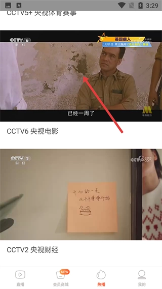 2、在热播板块,选择如【CCTV6央视电影】【CCTV2央视财经】等频道内容,进入对应频道页面。