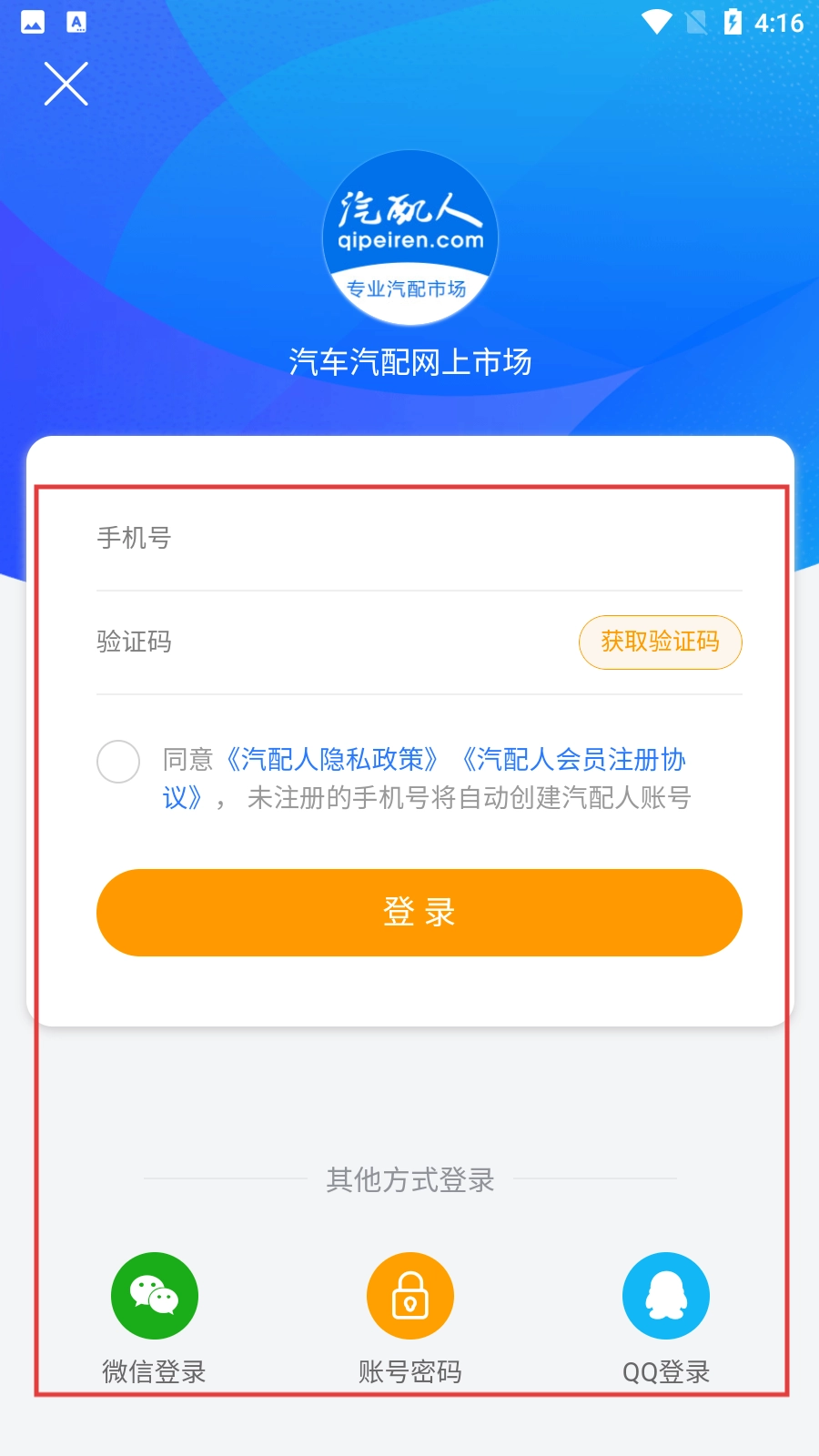 4、选择输入手机号和验证码登录,或通过微信、账号密码、QQ等其他方式登录,登录前需同意相关隐私政策和会员注册协议。