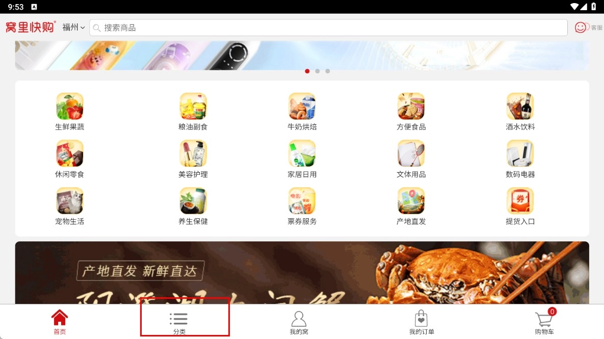 1、点击底部的【分类】功能按钮,即可进入商品分类页面。