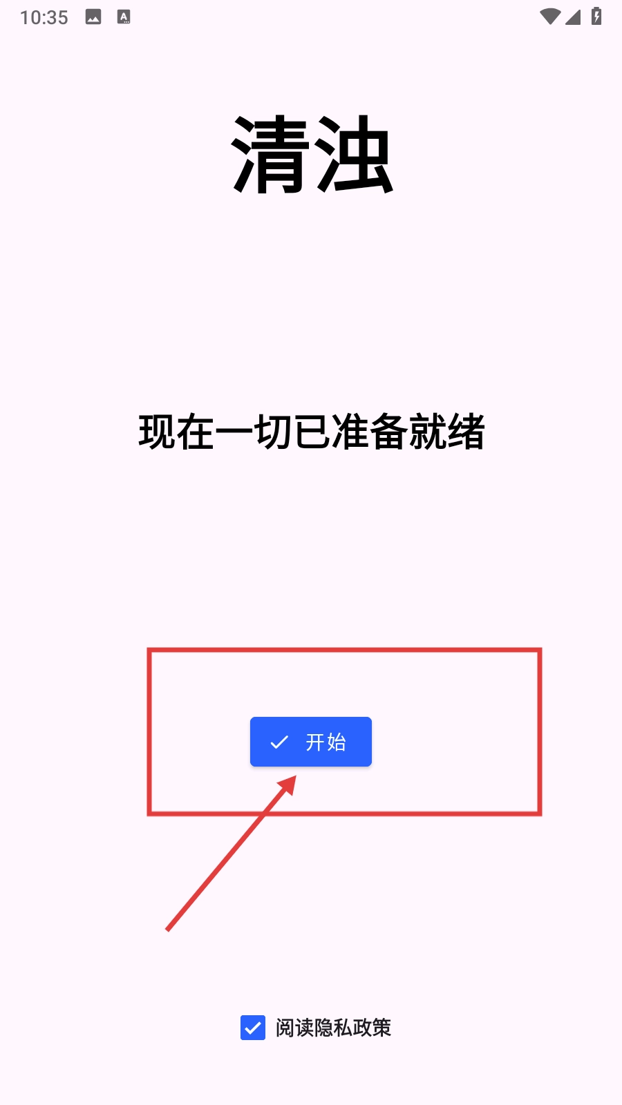 使用清浊前,需先勾选【阅读隐私政策】选项,再点击【开始】按钮,这样就能进入主界面了。