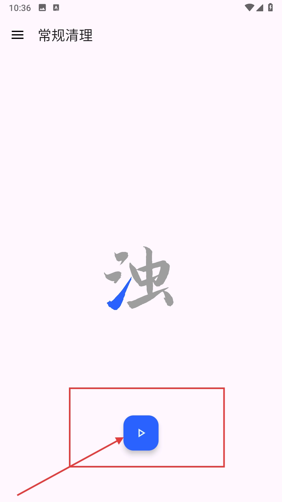 4、进入常规清理页面后,点击蓝色播放按钮,即可开始执行常规清理操作,帮助清理手机中的冗余文件。