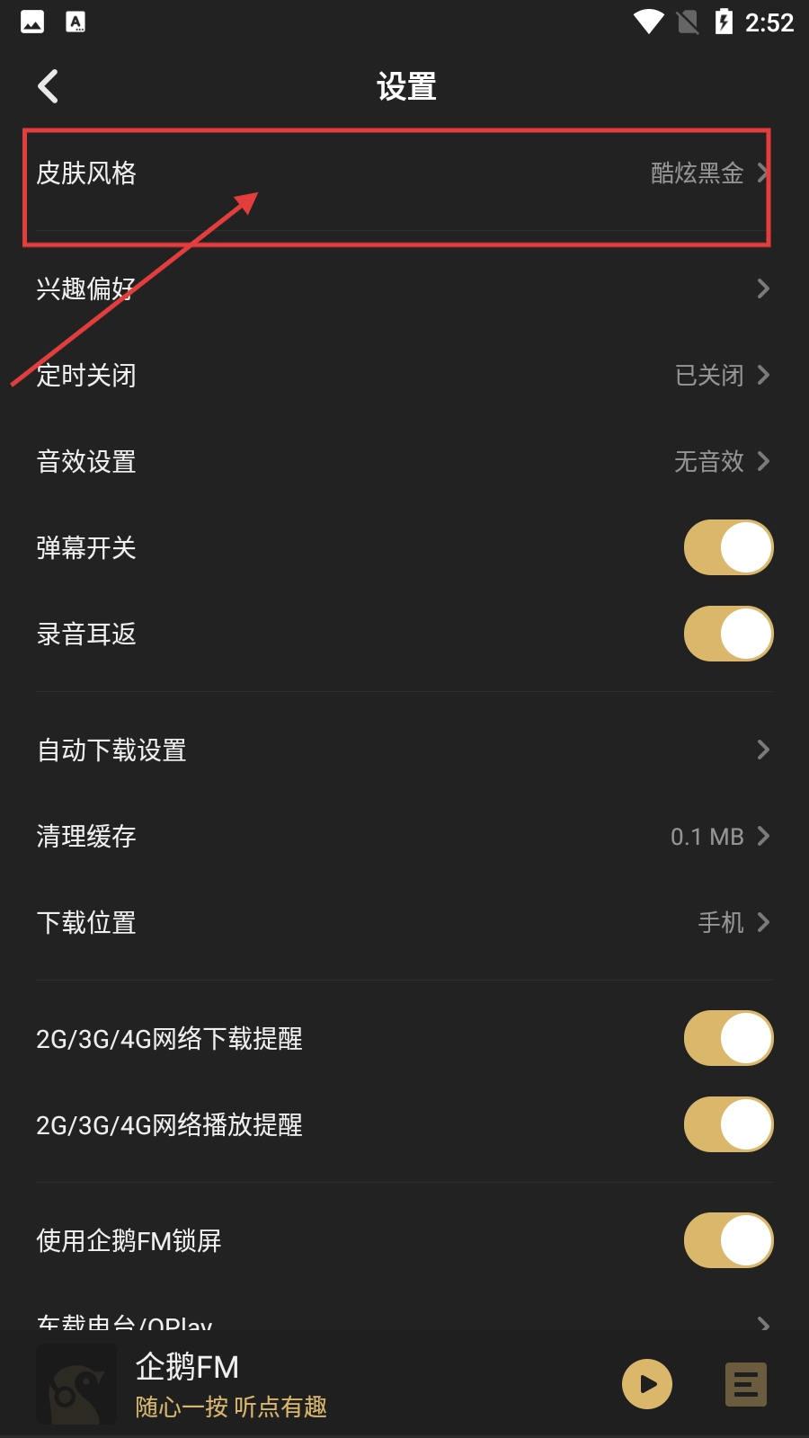 2、在【设置】页面中,找到【皮肤风格】选项并点击,可进入皮肤风格设置界面。