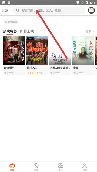 打开后,点击顶部的【搜索栏-电影/演出/艺人/影院】,输入关键词就能查找想要的内容,快速找到对应的资源。