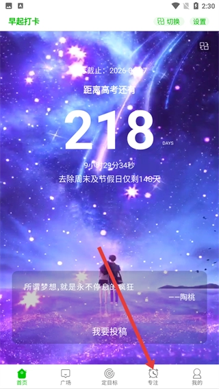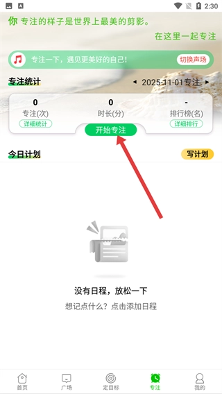 1、点击底部的【专注】选项,进入专注功能页面后,就能开启专注计时功能,帮助你更高效地完成学习或工作任务。