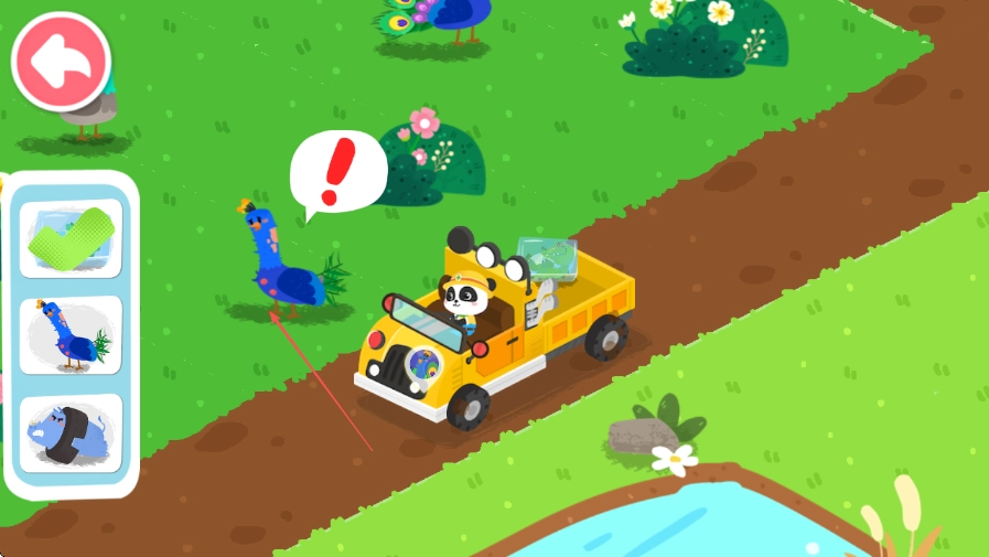 2、遇到路边的动物,如蓝色的鸟,点击动物将其救援上车。