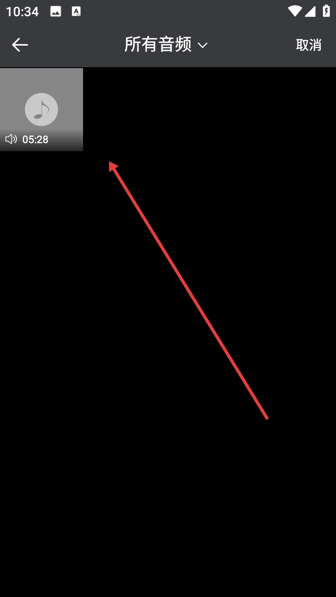 2、在所有音频选择界面选择目标音频,进入音频裁剪界面。