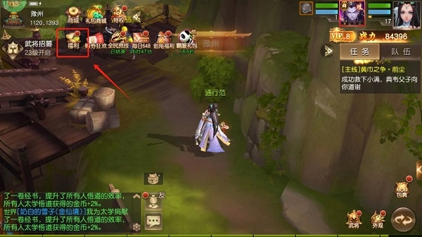 1、进入游戏首页点击福利