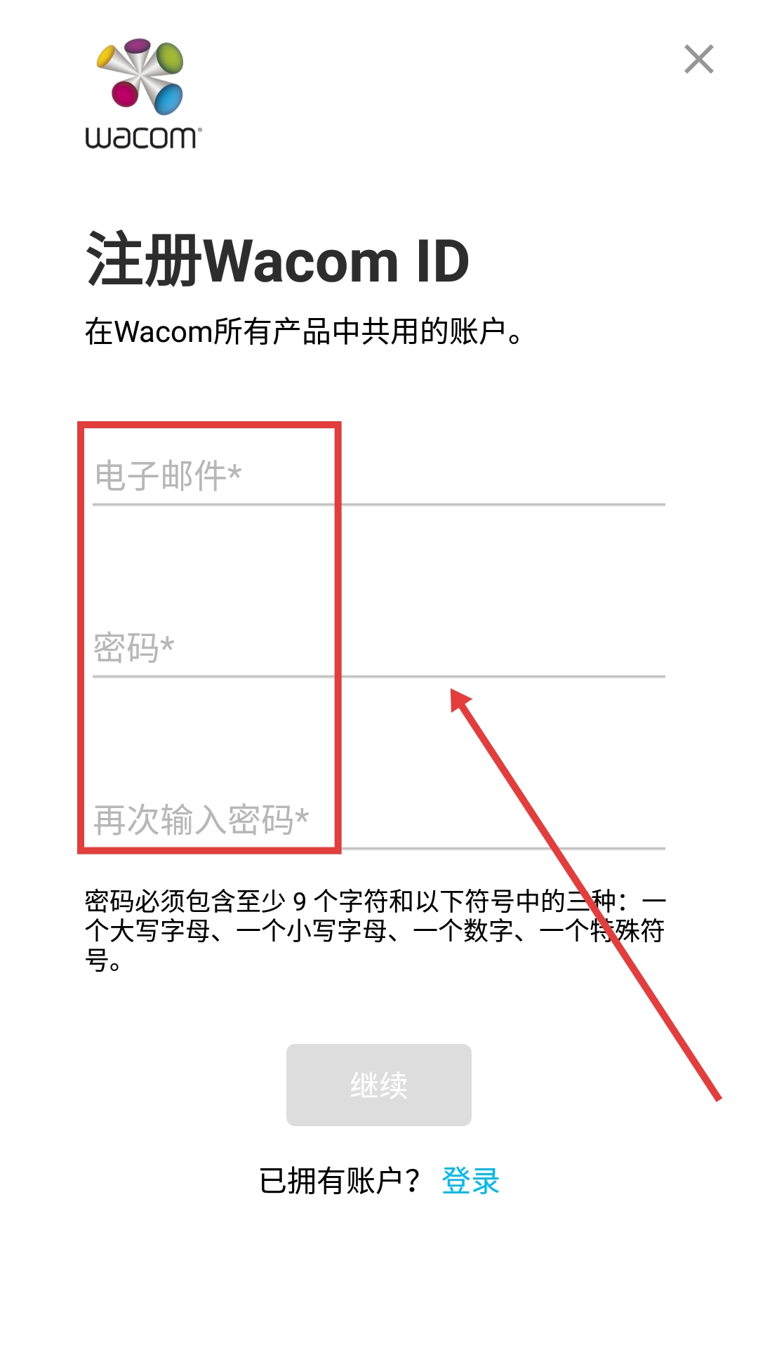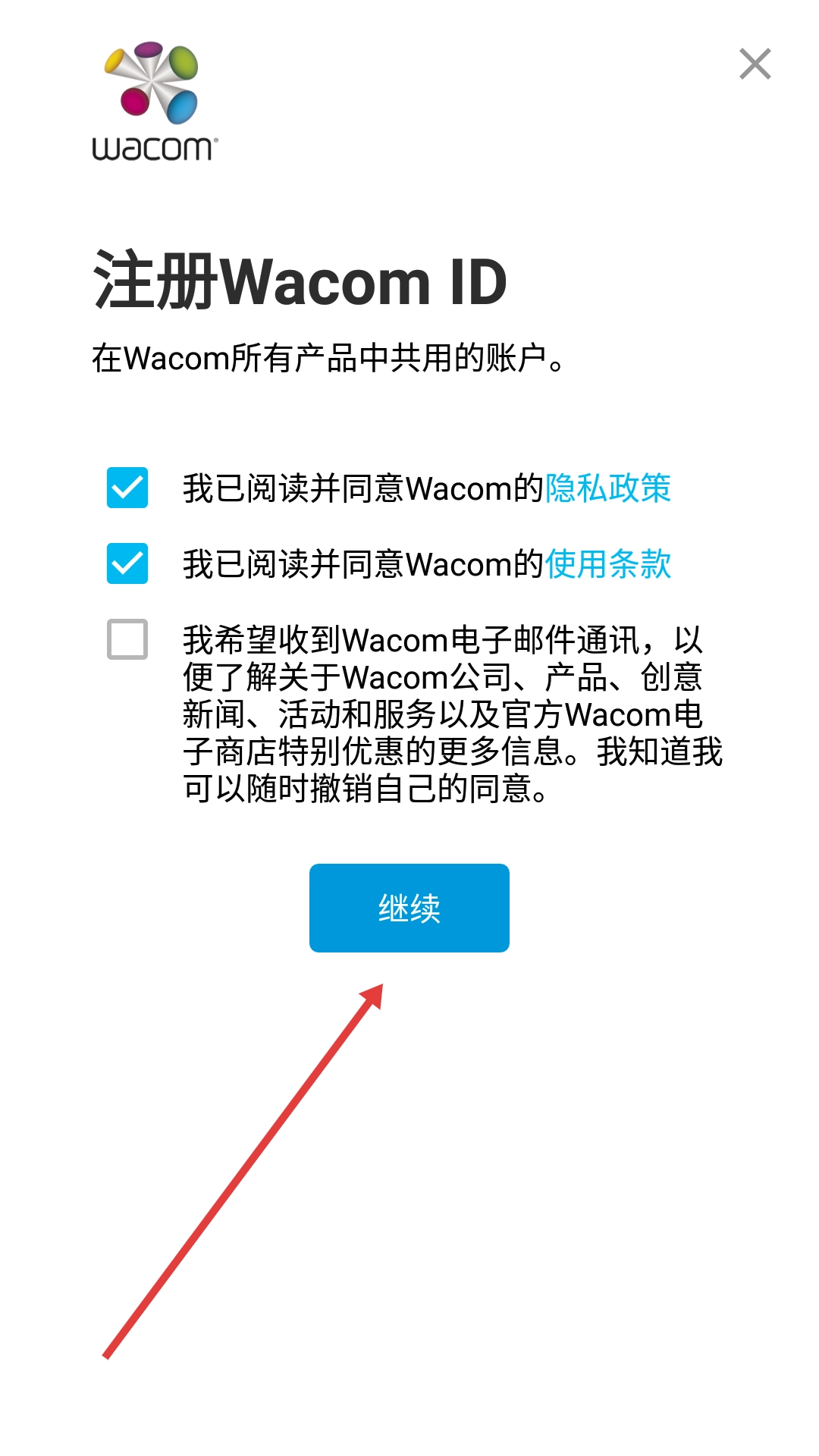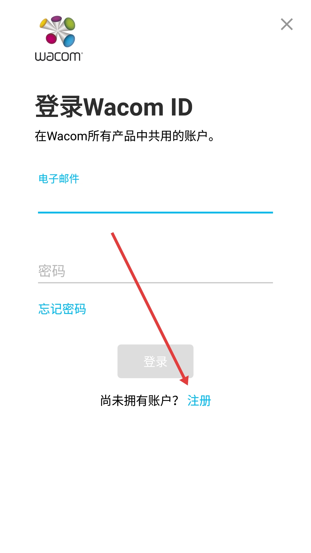 1、在Wacom-ID登录页面,点击“注册”按钮,即可进入Wacom-ID的注册页面。