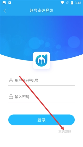 3、在账号密码登录界面,点击【忘记密码】选项,进入找回密码页面。