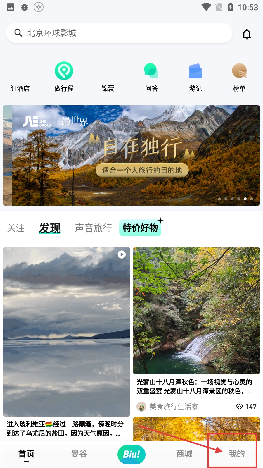 在这个旅游类首页,要是想进入个人中心,点击右下角的【我的】按钮就能切换到个人中心页面啦。