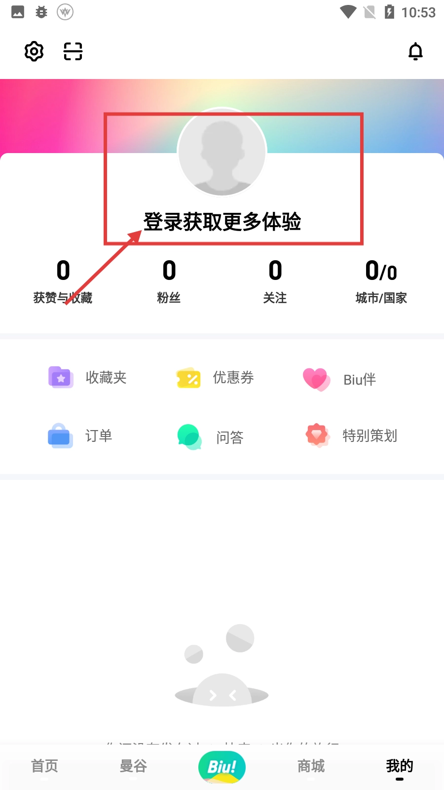 2、进入个人中心页面后,若需登录账号以获取更多体验,点击【登录获取更多体验】区域,即可进入登录页面。