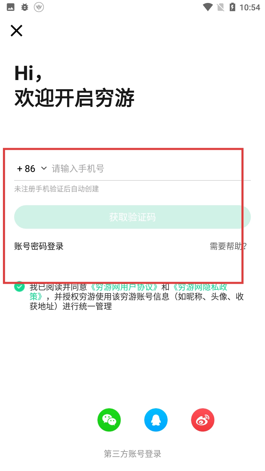 3、在登录页面,输入手机号,勾选同意协议后,点击【获取验证码】,进入验证码输入页面。