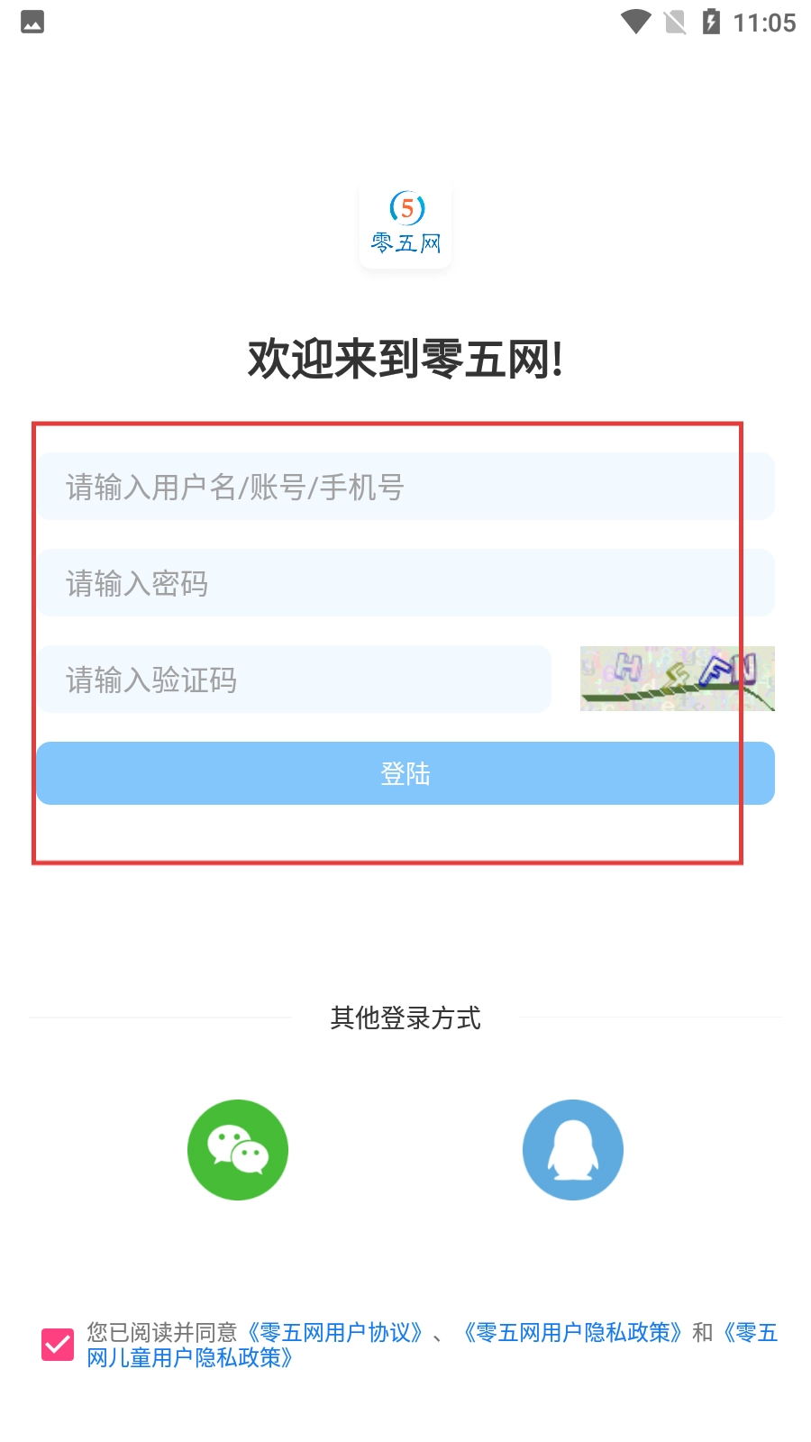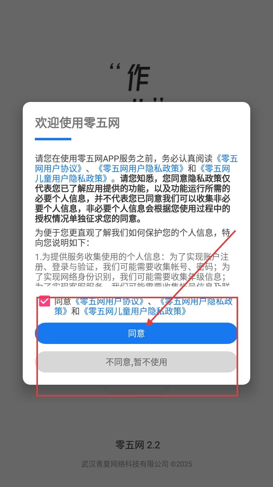 1、打开零五网后,勾选同意相关协议,点击【同意】按钮,即可进入首页。