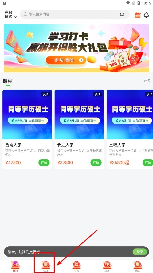 1、点击底部的【选课】功能按钮,即可进入选课页面。