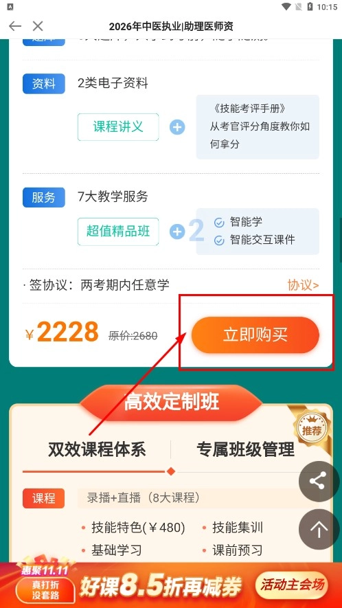 4、进入课程详情页后,点击【立即购买-功能按钮】,可购买该课程。