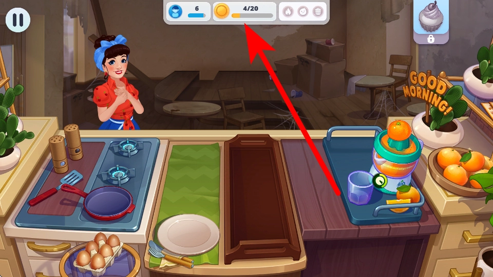 进入关卡前,你会看到该关卡的目标,像积累特定数量的金币这类;明确目标后点击开始按钮,就能进入餐厅经营的场景,开启这一关卡的挑战。