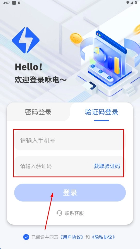 3、也可选择【验证码登录-登录方式】,输入手机号,获取并输入验证码后,点击【登录-功能按钮】进行登录。