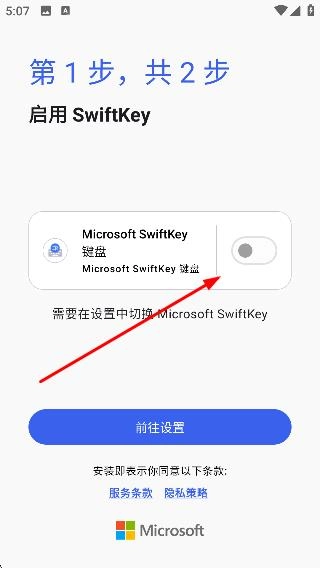 1、在“启用SwiftKey”这一步骤里,点击【前往设置】。
