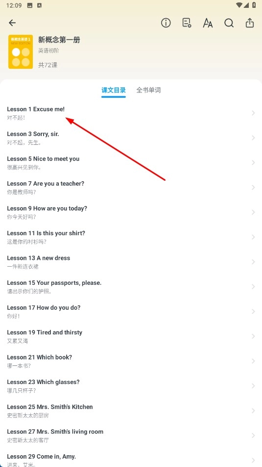3、进入课程目录页,选择【Lesson-1-Excuse-me!-课程章节】。