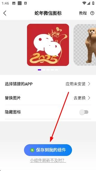 2、在小组件推荐页面选择【蛇年微信图标】,进入图标设置页面。