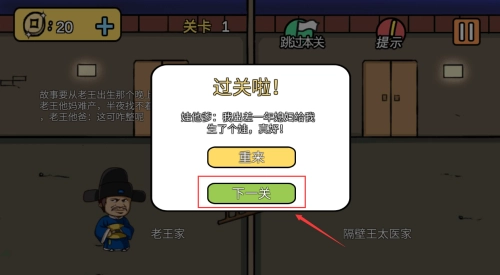 3、点击下一关按钮,继续后续剧情发展。