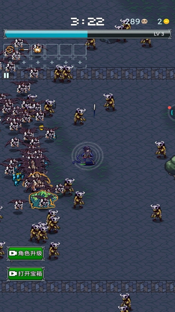 2、玩家可通过击败怪物、开启宝箱获取装备,高品质装备能大幅提升割草效率和生存能力。