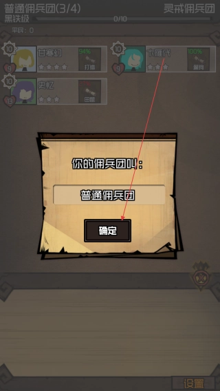 2、在弹出的命名界面,确认【普通佣兵团】名称后点击【确定】,完成佣兵团初始设定,开启团队养成。