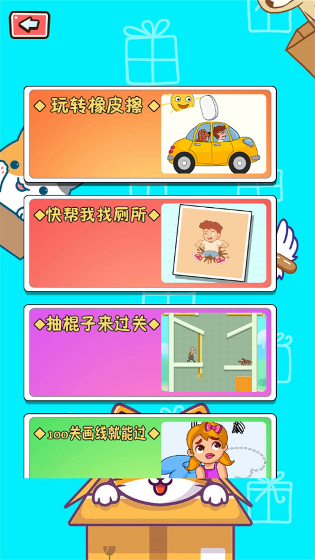 无敌脑洞橡皮擦安卓版是一款以橡皮擦为核心道具的趣味闯关游戏,游戏内包含大量解压小游戏,玩家可以灵活运用橡皮擦来解决各种脑洞问题,还能和好友在线对战,在轻松的氛围里解锁关卡、打发空闲时间,展现自己的智慧并收获不少乐趣。