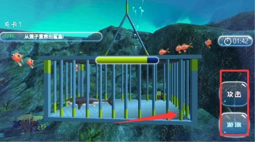 游戏开始后,先熟悉气泡的操控方法,调整飞行方向以避开障碍物,保障小鱼安全行进并成功抵达目标区域。