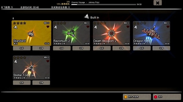 3.模式选择:普通模式、生存模式(刷分模式,比普通难一点,随机播放BGM,直到全部生命耗尽结束游戏)、Boss Rush(每分钟刷新一/两个boss进行挑战)。