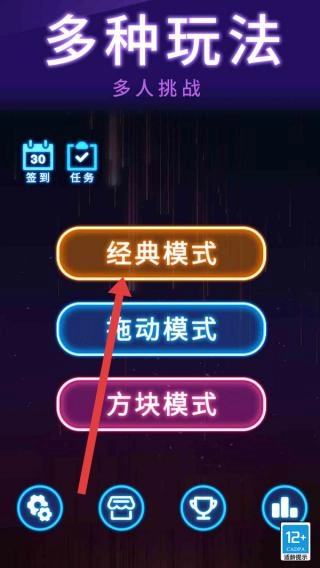 1、进入玩法选择界面后,点击【经典模式】即可开启俄罗斯方块玩法,玩家需要通过拼接不同形状的方块,达成整行消除的目标来积累分数。