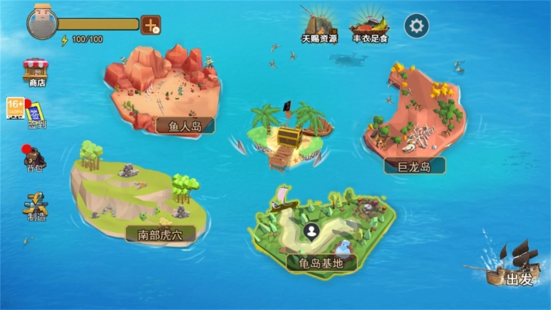 4、选择不同岛屿探索,完成采集香蕉等任务获取能量,解锁新区域,为造船收集关键材料。