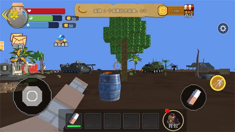 1、控制角色在岛屿场景中移动,收集草、石头这类基础资源,以满足制作所需,例如利用草和石头制作简易工具。