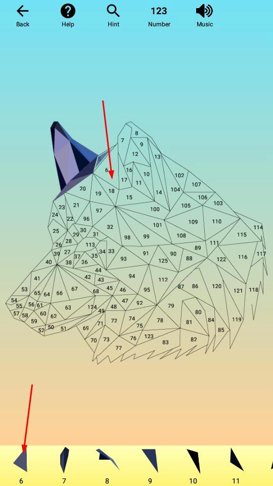 2、下方选带编号多边形碎片,对应拼图上数字区域,精准放置,逐步拼接,还原完整图形,体验拼接乐趣。