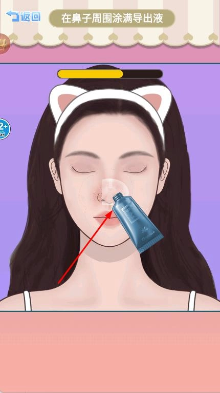 2、进入在鼻子周围涂满导出液步骤,使用蓝色软管道具,精准涂抹鼻子区域清洁干净后,进行下一步。