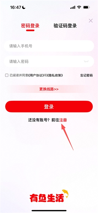 3、在登录页面,点击注册选项,进入注册页面。