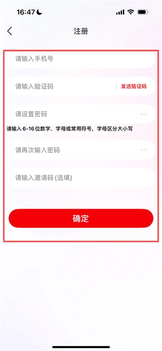 4、在注册页面,填写信息后点击确定,完成账号注册。