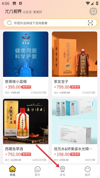 1、打开兀几视界App,点击【本地】进入本地服务板块,开启周边商家探索之旅吧。