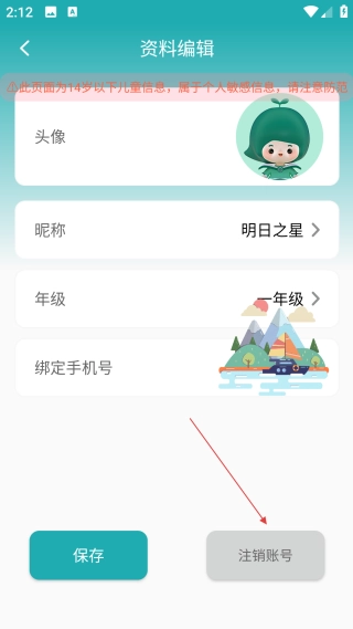 3、在资料编辑页,点击【注销账号】,进入账号注销的提醒确认页面。