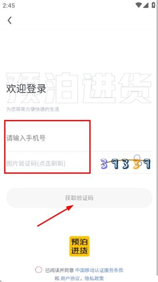 2、在登录页面填写手机号和图片验证码,勾选相关协议后点击获取验证码。