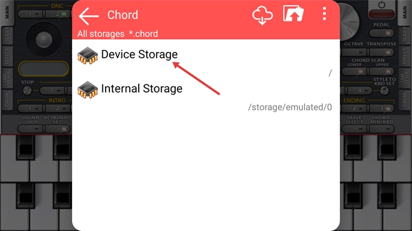4、在存储选择界面点击【DeviceStorage】,进入设备存储查看和弦文件。