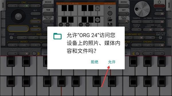 3、在权限请求弹窗中点击【允许】,授予“ORG24”访问设备照片、媒体内容和文件的权限。