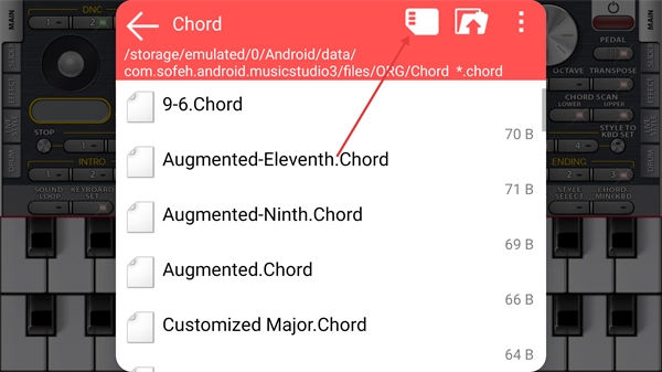 2、在和弦文件列表中点击右上角按钮。