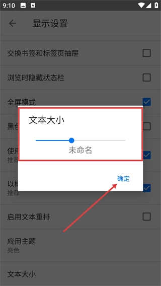 3、在显示设置页面点击【文本大小】选项,弹出文本大小调整窗口。