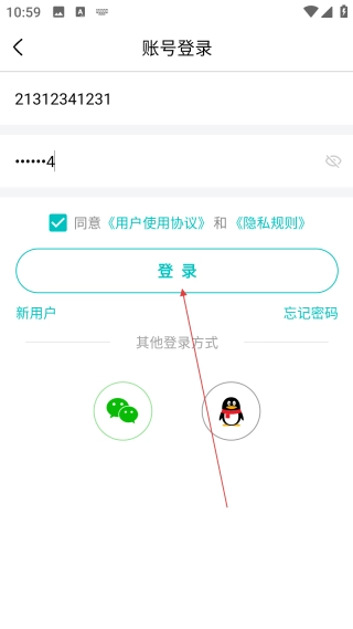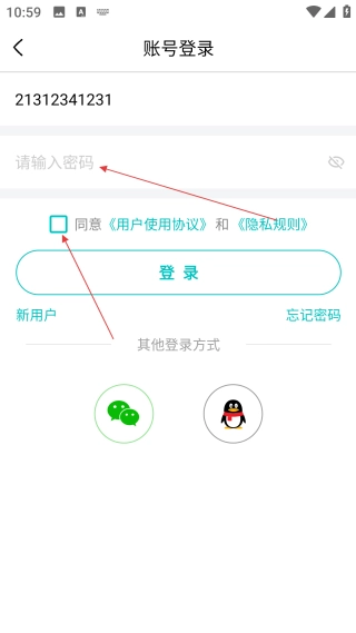3、填好账号后,输入【密码】,再【勾选协议选项】准备登录。