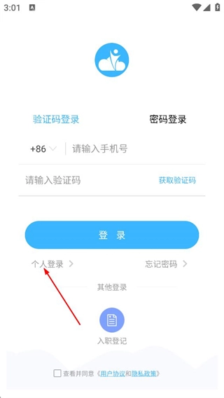 1、在登录选择页面,点击“个人登录”选项,即可进入个人登录界面。