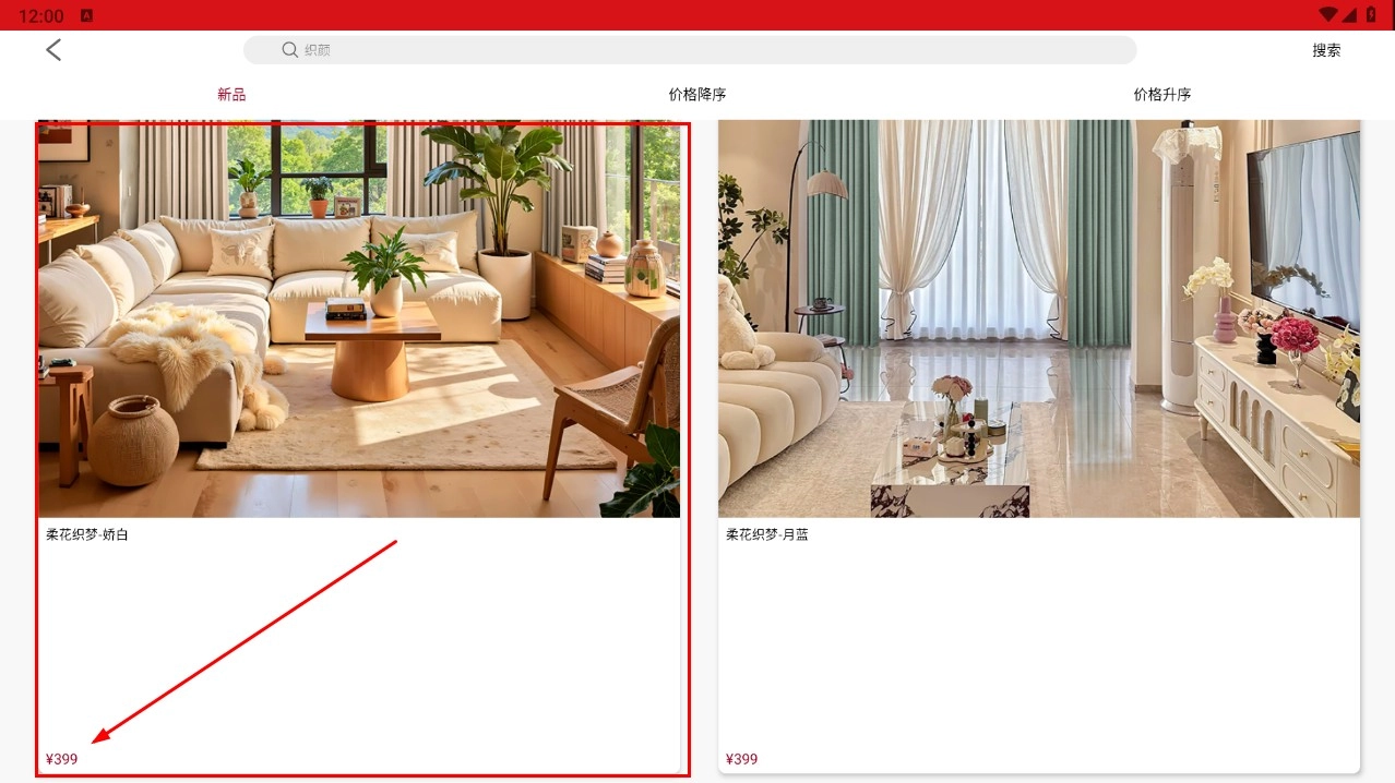 3、点击感兴趣的窗帘款式,如“柔花织梦”系列,进入详情页面。