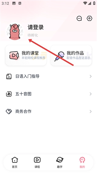 1、打开爱上学日语,进入【我的】界面,点击【请登录】入口。