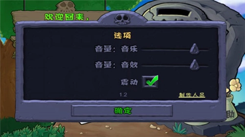 2、选项界面可以调节游戏音乐、音效的声音大小;